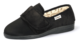Sophie - This style is specially constructed to give a seam free toe area. Ideal for sensitive feet, or to accommodate bunions or hammer toes. 2 -in-1 fitting system with removable insole. Velour lining and cushioned, non-slip outdoor sole. Deep toe box and ultra wide 4E-6E fitting. Available in Navy, Navy Floral, Wine and Wine Floral and in sizes 3-9. Mandy - A smart looking house shoe for excellent support and adjustment, but with the softness of a slipper. The Mandy has a soft washable upper and an extra wide opening with twin touch fastening straps. 2 -in-1 fitting system with removable insole. Velour lining and cushioned, non-slip outdoor sole. Ultra wide 4E-6E fitting. Available in Black, Navy Sky, and Wine Pink and in sizes 3-9. Susie - The stretchable elastane material is great to accommodate very swollen or misshapen feet. The adjustable fastening holds the foot snug against the heel for good support. This style will ‘mould’ to the shape of the foot, even when your feet change shape during the day. Sanitised protection with 100% cotton lining. 2 -in-1 fitting system with removable insole. Deep, seam free and stretchable toe areaCushioned, non-slip outdoor sole. Ultra wide 4E-6E fitting. Available in Black and in sizes 3-9. |