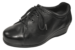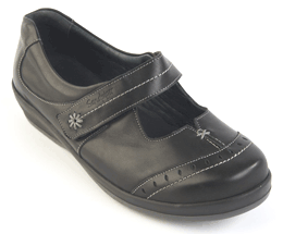 You can see and try-on these Ladies Extra Wide Shoes in our Folkestone or Birchington Stores Endon - An excellent fitting lace-up style. The 5 eyelet design gives maximum adjustment, even for very difficult feet. Carefully designed to look neat, even with very wide or swollen feet. Available in Bark/Beige, Red or Black, and in sizes 36-42, 4E-6E. Two removable insoles give 3 fitting options on each foot. Foscot - This style gives great support to the foot, and the extra long straps give excellent adjustment. A smart, practical and supportive style for difficult feet. Two removable insoles give 3 fitting options on each foot. Available in Black or Brown/Nubuck and in sizes 36-42, 4E-6E.