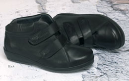 You can see and try-on these Ladies Extra Wide Shoes in our Folkestone or Birchington Stores Brean - Wide openings and good support is what makes this ankle boot style stand out from the rest. The twin strap design, and the low-cut back, just add to the practicality of this great style for winter. Deep and wide toe box and extra wide opening. Super soft leather upper and ultra flexible construction with underfoot support. Two removable insoles give three fitting options on each foot. Available in Black and in sizes 36-42, 4E-6E.