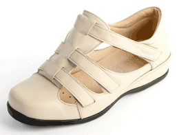 Walmer - A shoe that looks so good it will command attention, but feels so good you’ll not want them off your feet. The padded top line, and long adjustable strap are just two of the features that make this shoe unique and so superbly accommodating. Low cut front for very high or swollen feet. Underfoot support, padded ankle support and deep toe box. Two removable insoles giving three fitting options on each foot. Available in Black, and in sizes 3-9, 4E-6E. Wilcot - A great looking, lightweight design in supersoft leather, with more adjustment than you will ever need! The three individually adjustable touch fastening straps allow you to shape the shoe to suit your foot. Extra long straps for maximum adjustment. Ultra flexible construction and deep toe box. Padded ankle support and tongue. Two removable insoles give three fitting options on each foot. Available in Stone, Chestnut and Black, and in sizes 36-42, 4E-6E |