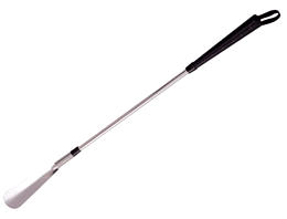 This longer length Shoe Horn is designed to help the user put on shoes without bending. It is finished in chrome and features an easy grip handle and hanging loop. Weight: 1.32kg, Chrome Finish, Black Handle